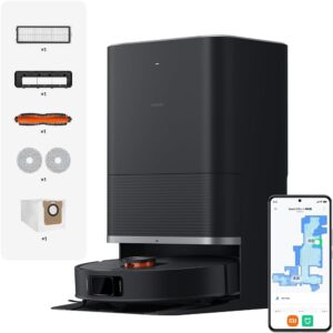 【水拭き/両用/多機能充電ステーション搭載/自動集塵・洗浄・温風乾燥機能/AIカメラ搭載 物体認識と障害物回避/ダートディテクト機能/マッピング/アプリ操作/amazon.co.jp購入時12ヶ月保証/X185060】ブラック