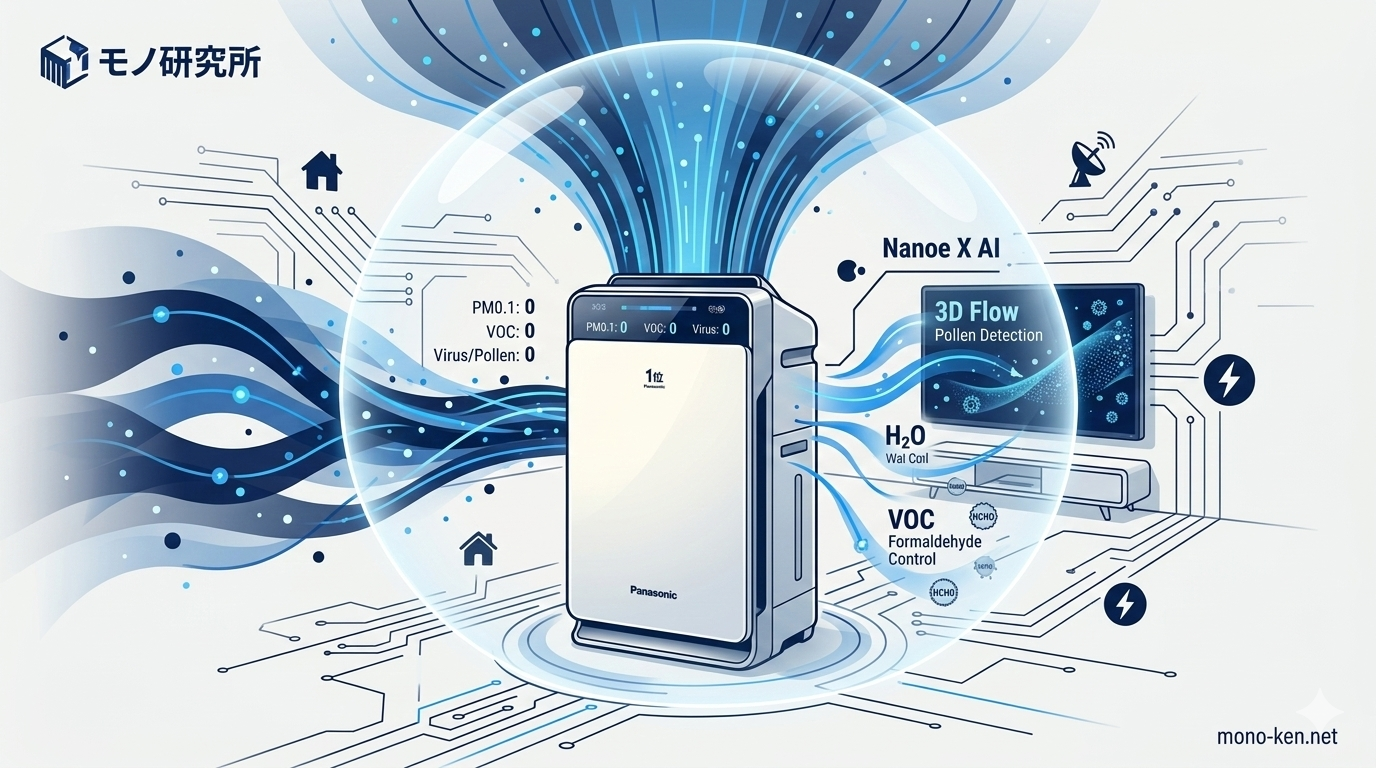 2026年3月現在、空気清浄機市場は、従来の「HEPAフィルターによるろ過」や「風量の強さ」の競争を一段落させ、**「AIによる浮遊粒子のリアルタイム組成分析」「環境適応型の能動的ウイルス・アレルゲン制御」**が融合した、新たなフェーズに突入しています。モノ研究所が今、空気清浄機を再定義する上で最も重視しているのは、単なるフィルター性能ではなく、室内の空気質を微粒子のレベルでデータ化し、それに基づいて浄化プロセスをミリ秒単位で最適化する「インテリジェント・エア・ガバナンス」です。